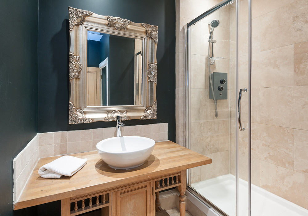 A good nights rest is assured in both bedrooms, with the same breath taking views directly overlooking the castle and esplanade, thanks to the comfortable orthopaedic mattresses. Each bedroom has a built in wardrobe providing ample space for even the most demanding fashionista. You will also find an ironing board, iron and hairdryer in each room so you don’t have to wait for others to get ready. The main bedroom is set up as a standard double and the other bedroom can either be set up as a king size or a twin as required. Our extra wide luxury shower room is finished in travertine tiling and has a 10kw shower.